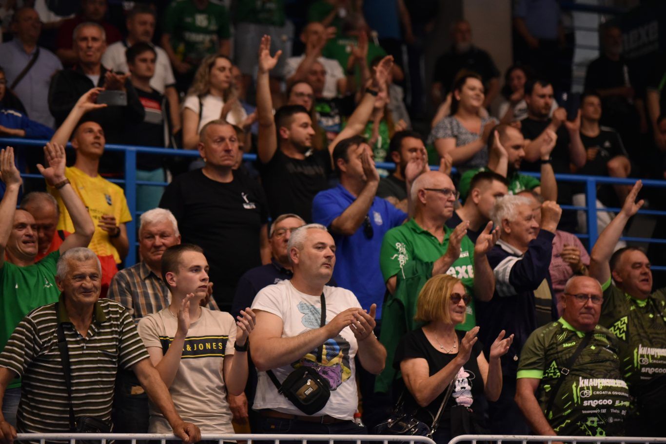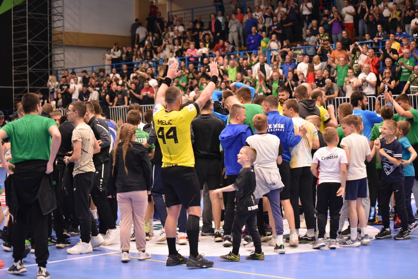 U nastavku osjetno bolja igra Plinara koji uspijevaju iskoristiti nekoliko naših loših pokušaja u napadu, razbranio se vratar Panjtar koji je do kraja susreta nanizao čak 11 obrana. Za samo osam minuta drugog dijela Zagreb se približio na -2 (19:17), pa je za minutom predaha morao posegnuti i trener Branko Tamše. Ne uspijevamo realizirati napad, a u pokušaju da iz polukontre po boku probije do našeg gola Zvonimira Srnu malo grublje zaustavlja Gianfranco Pribetić. Obojica su završila na podu tik uz našu klupu, a nakon burne reakcije gostujućih igrača koji su potrčali prema njima, u tren su poskočili i svi naši igrači. U kraćem naguravanju i verbalnom raspravljanju po dvije minute kazne zaradili su Marko Račić i Gianfranco Pribetić te Jakov Gojun iz gostujuće momčadi. Iako brojčano nadmoćniji Zagrebaši ne uspijevaju realizirati napad - Mihailo Radovanović zaustavlja udarac Grahovca za erupciju oduševljenja na tribinama. Navijanje je pojačano na maksimum, a u idućem napadu zabija Sršen. Posljednjih dvadeset minuta utakmice gledali smo rovovsku bitku s obje strane. Plinari su pod svaku cijenu pokušavali poravnati rezulat, ali najbliže što su došli je bio minimalni zaostatak. U 51. minuti opet se odvajamo na nešto mirnijih +3 (23:20). Zabio je Melić fantastično s krila, a nešto kasnije Kuzmanović brani sedmerac Ćavaru, nakon čega su tribine doslovce proključale. No, do kraja je ostalo još dosta vremena, Zagreb se još jednom uspijeva približiti na samo gol zaostatka (24:23) pogotkom Muse, nakon što je u najmanju ruku nesvakidašnje isključenje zaradio Severec nakon što je napravio klasični rukometni prekršaj. No, prema mišljenju sudaca malo je predugo ostao u "zagrljaju" sa suparničkim igračem i zato zaradio kaznu. Unatoč brojčanom zaostatku Sršen uspijeva izboriti sedmerac koji u pogodak majstorski pretvara Fahrudin Melić za novih +2. Pokušali su Zagrebaši brzo anulirati prednost, no u tome ihe je spiječio Radovanović s dvije sjajne obrane, a nešto više od minute prije kraja sjajnim prodorom i još boljim pogotkom sudbinu Zagreba zapečatio je Luka Moslavac poentiravši za konačnih 26:23. Imali su gostujući igrači priliku ublažiti poraz, no pokušaj Ćavara s krila joše jednom skida Radovanović, a u posljednjem napadu pokušaj kapetana Kević završava pored gola, ali to više nikoga nije zabrinjavalo. Veliko slavlje moglo je započeti, naravno tradicionalno s pjesmom Inati se Slavonijo!!