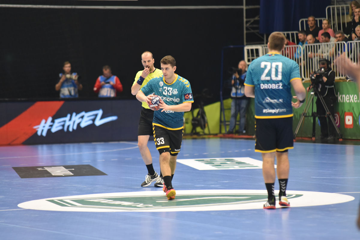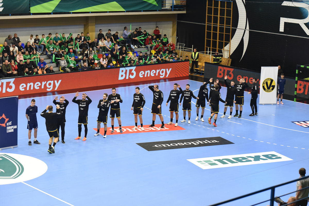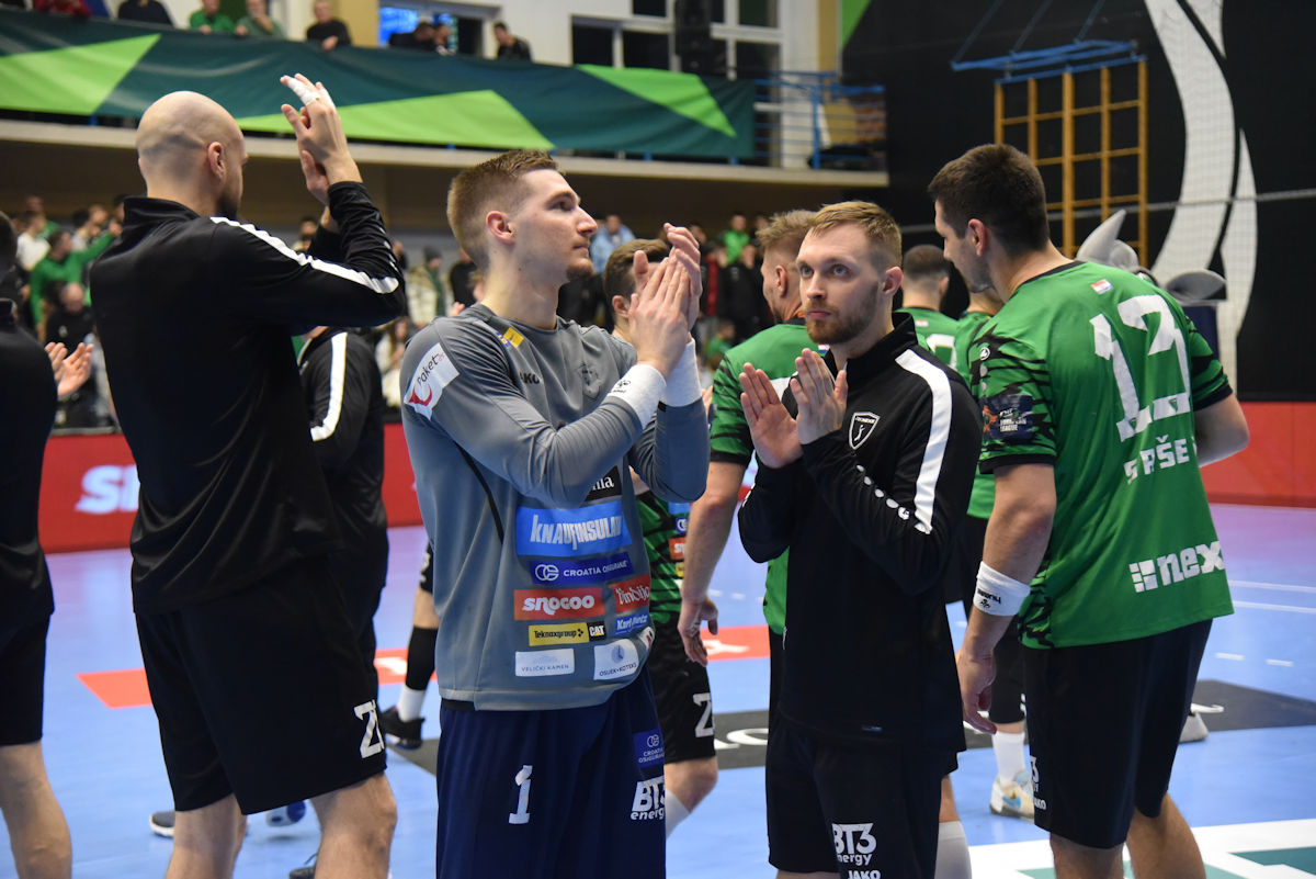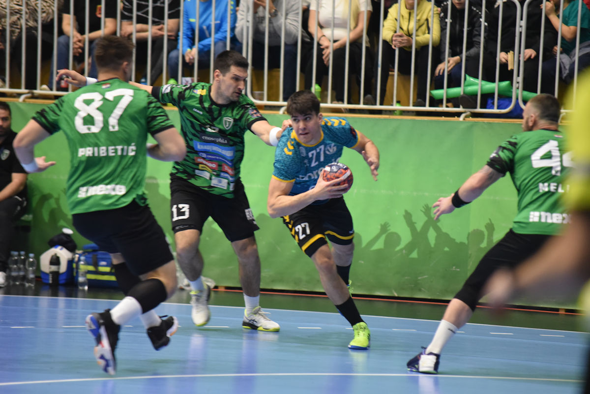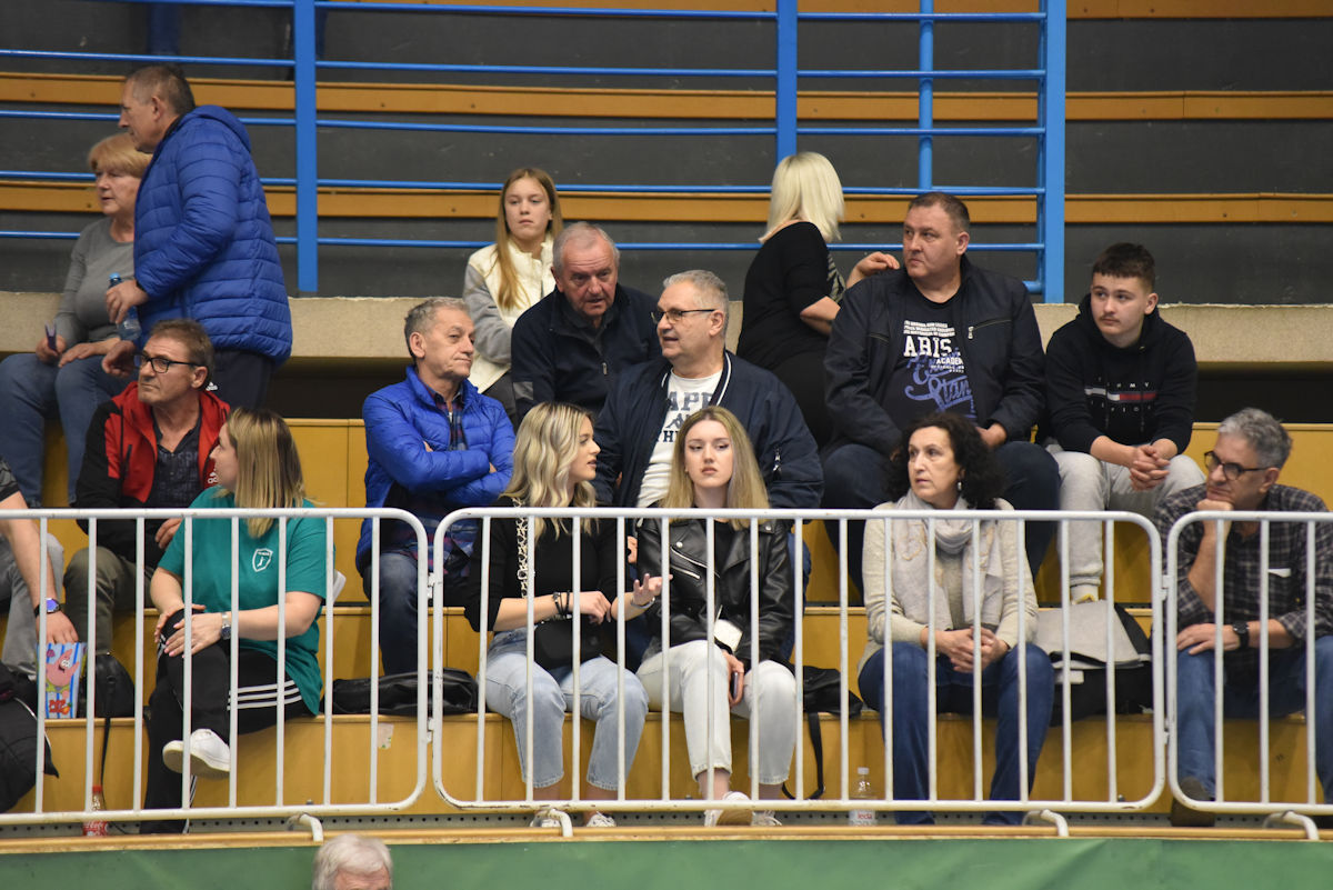 U odličnoj atmosferi našičke sportske dvorane, koju su osim velikog broja domaćih navijača pohodili i gosti iz Velenja, početak utakmice prošao je vrlo izjednačeno. U 10. minuti prvi se puta odvajamo na +2 (7:5) i do kraja uspijevamo zadržati ovu prednost. Mlada i hitra slovenska ekipa odoljevala je našim napadima i uspijevala držati priključak do odmora, ne dopuštajući da se odvojimo na više od tri pogotka prednosti.