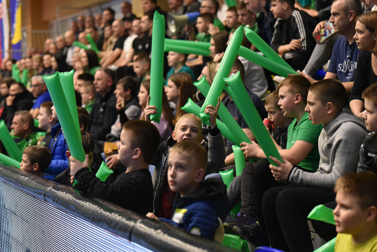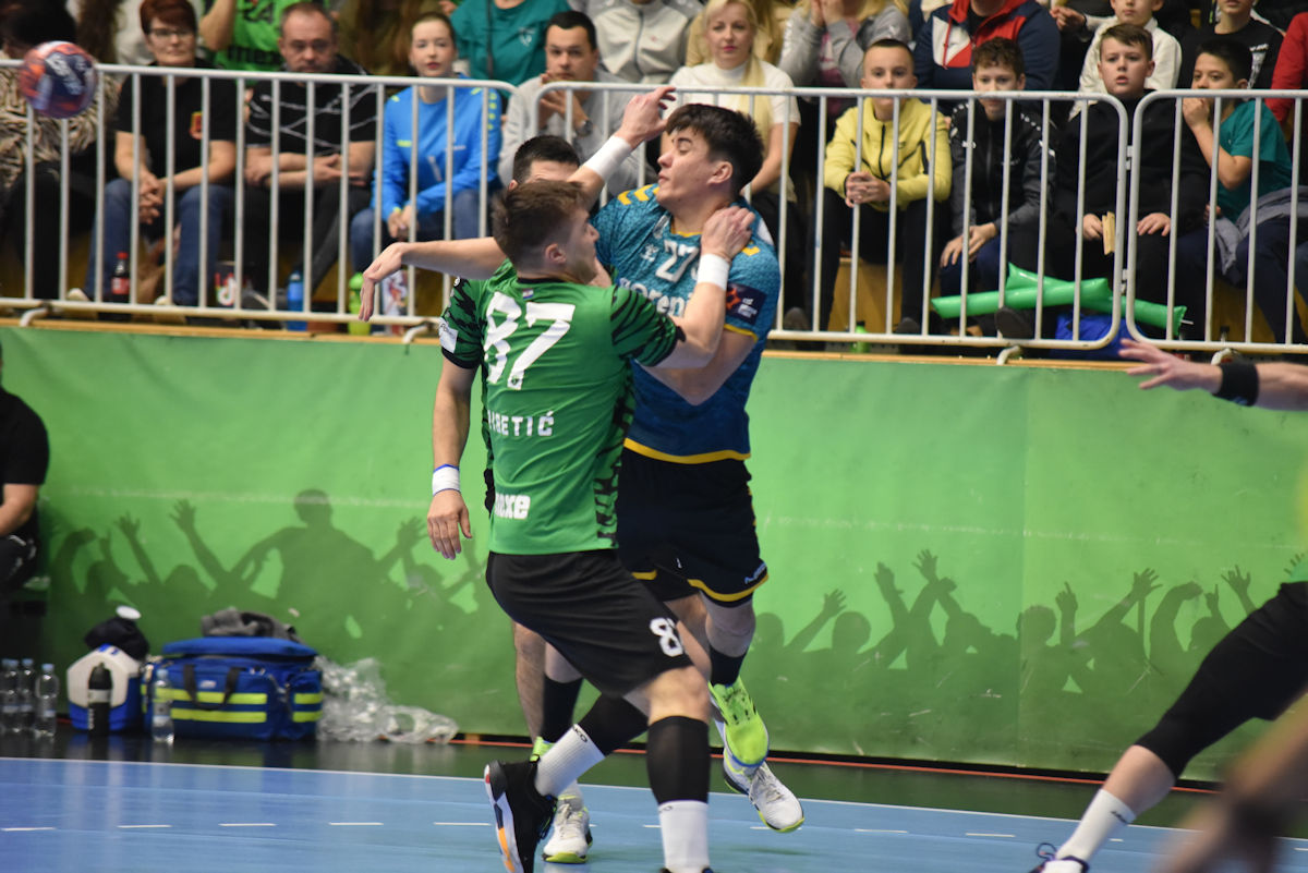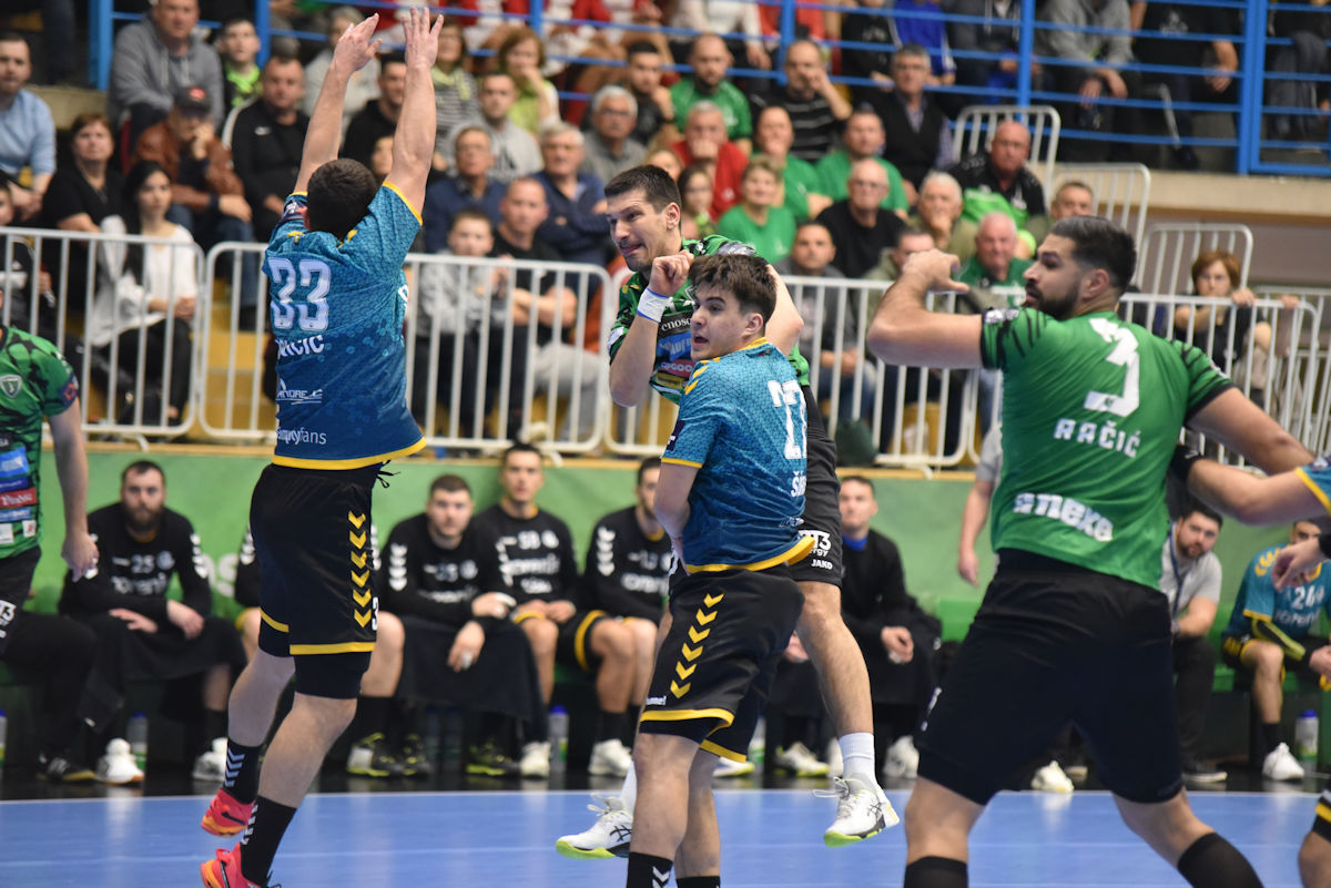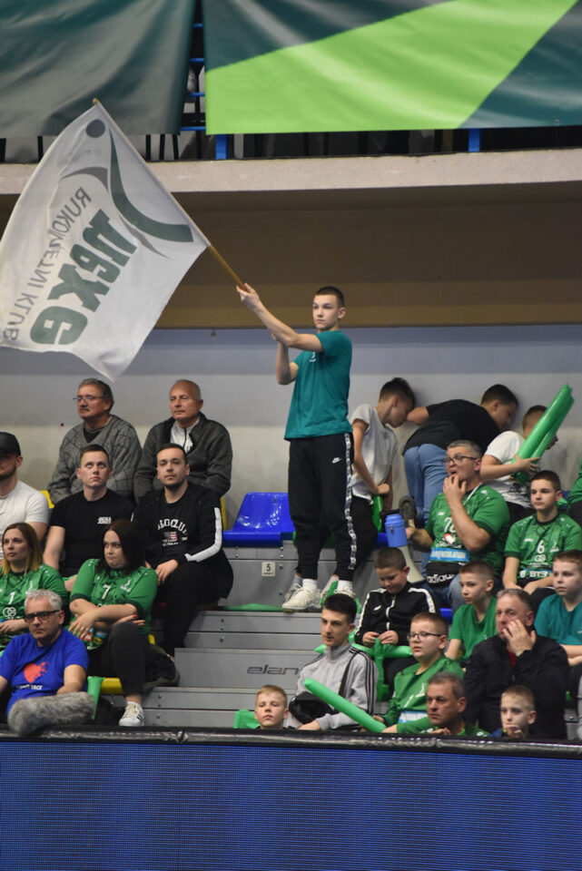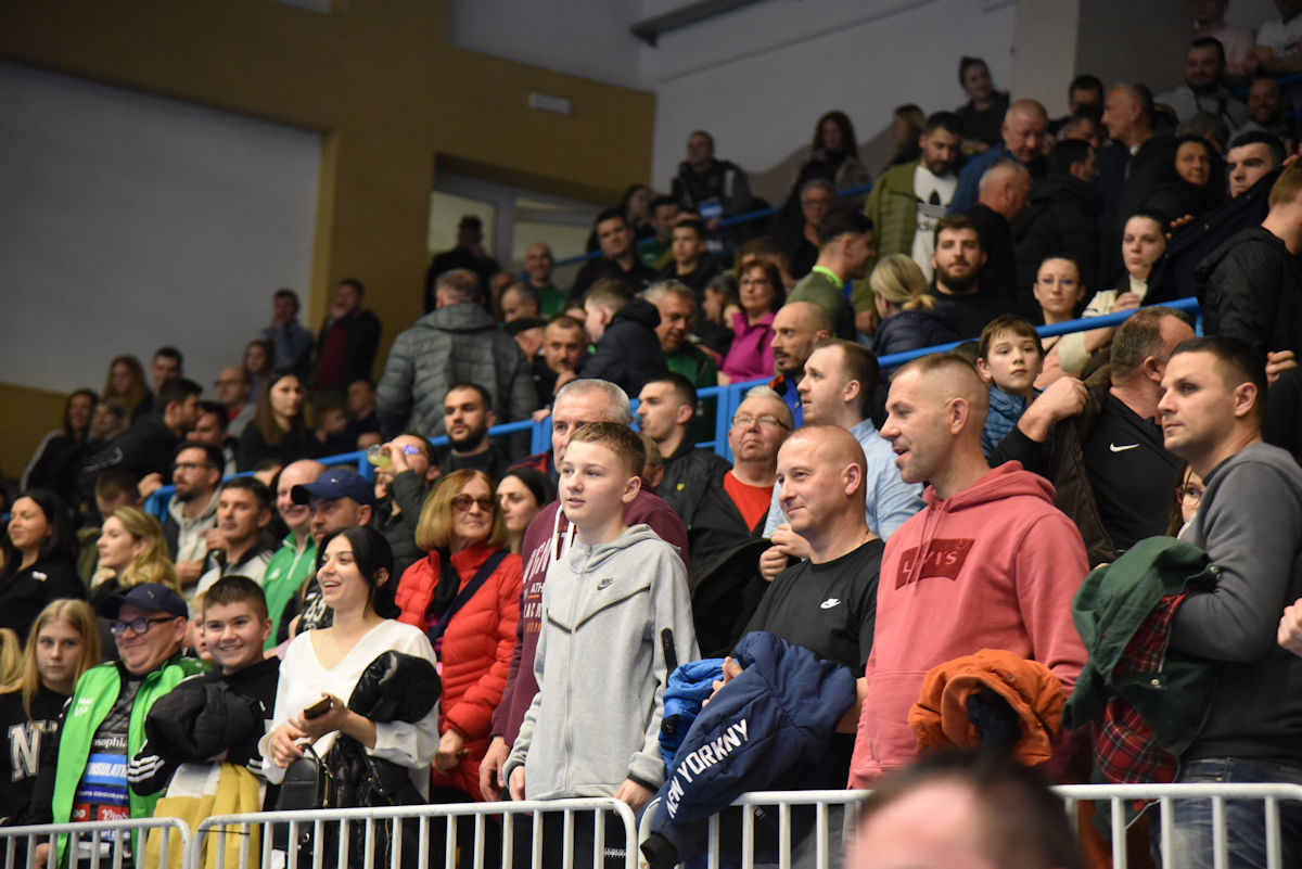 U odličnoj atmosferi našičke sportske dvorane, koju su osim velikog broja domaćih navijača pohodili i gosti iz Velenja, početak utakmice prošao je vrlo izjednačeno. U 10. minuti prvi se puta odvajamo na +2 (7:5) i do kraja uspijevamo zadržati ovu prednost. Mlada i hitra slovenska ekipa odoljevala je našim napadima i uspijevala držati priključak do odmora, ne dopuštajući da se odvojimo na više od tri pogotka prednosti.