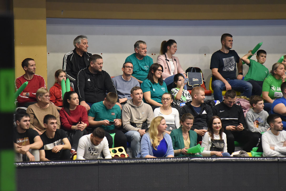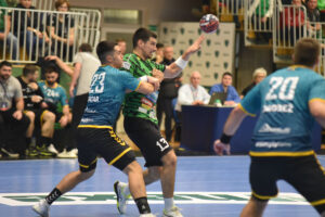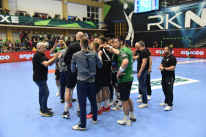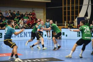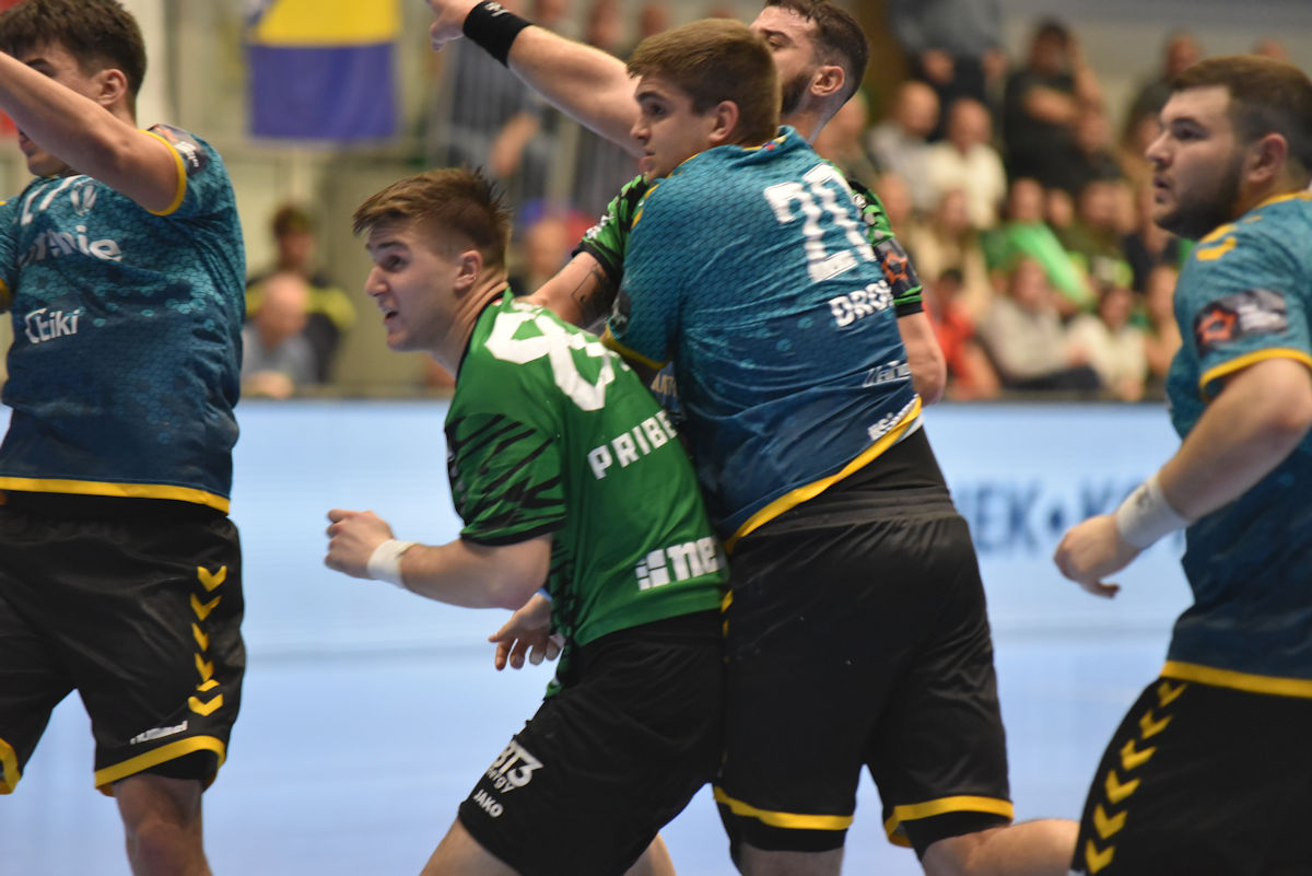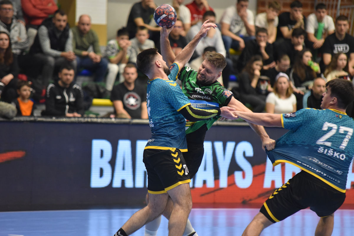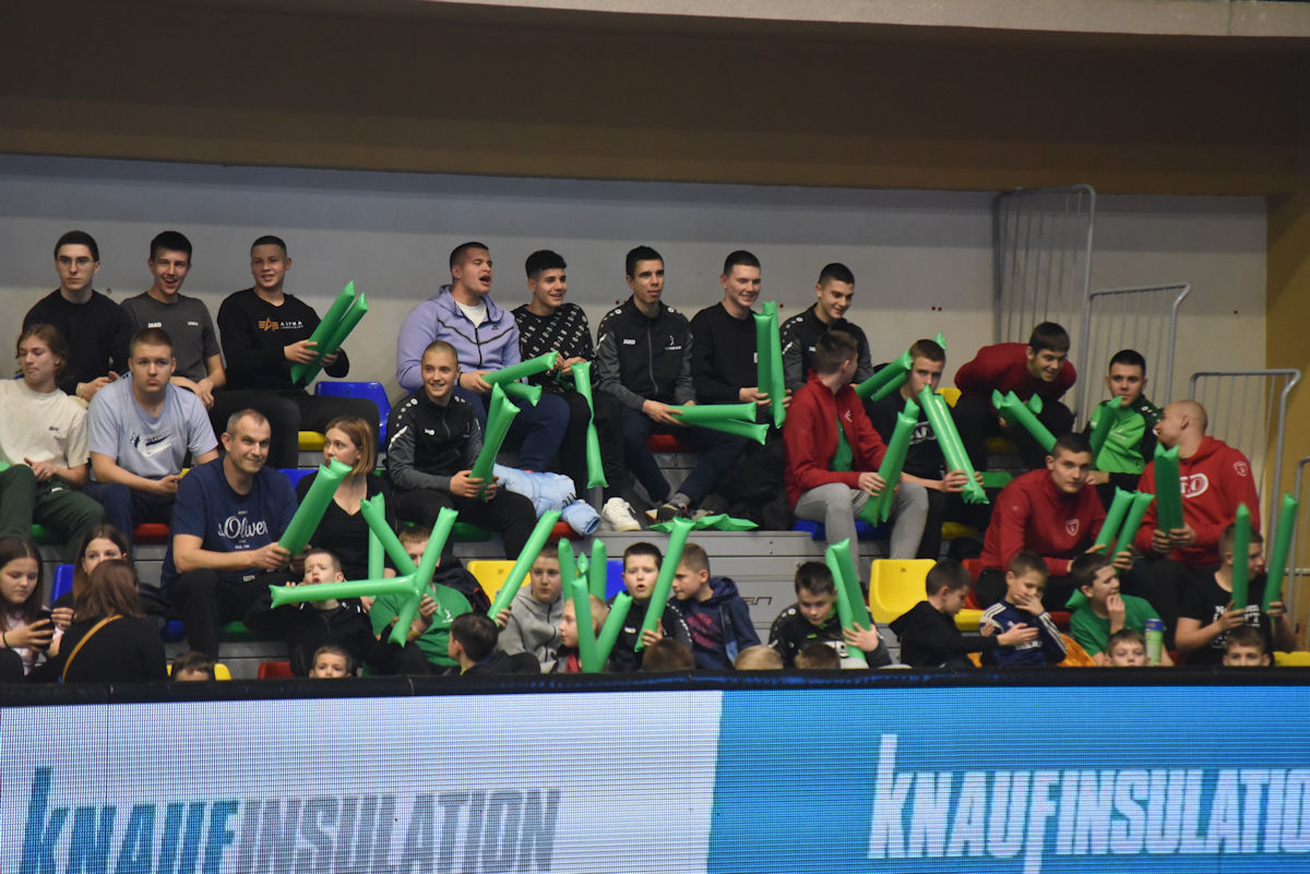 U odličnoj atmosferi našičke sportske dvorane, koju su osim velikog broja domaćih navijača pohodili i gosti iz Velenja, početak utakmice prošao je vrlo izjednačeno. U 10. minuti prvi se puta odvajamo na +2 (7:5) i do kraja uspijevamo zadržati ovu prednost. Mlada i hitra slovenska ekipa odoljevala je našim napadima i uspijevala držati priključak do odmora, ne dopuštajući da se odvojimo na više od tri pogotka prednosti.