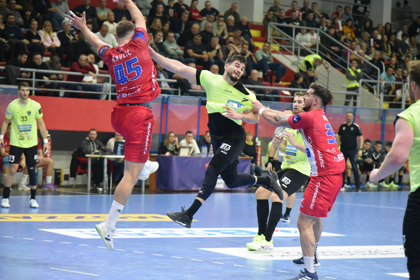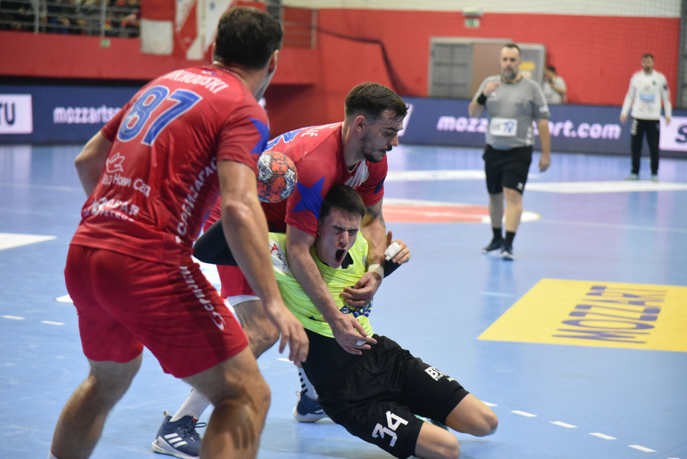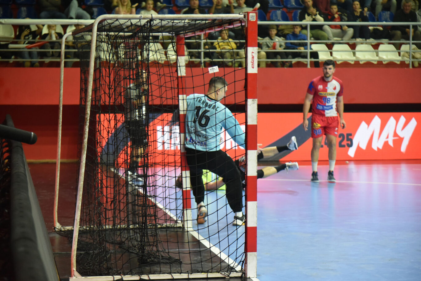 U nastavku smo donekle uspjeli uspostaviti ritam igre i nakon puno bolje i čvršće igre u obrani i nekoliko obrana mladog Šarića, u 44. minuti smo se primaknuli na samo tri pogotka razlike (23:20). No u jednom duelu Leon Vučko je nehotice laktom zakačio Nikolića u punom trku, pa su mu suci dosudili crveni karton i za njega je utakmica bila završena. Ponovno griješimo u napadu, radimo tehničke greške i upućujemo nerezonske udarce na gol koje je zaustavljao večeras izuzetno raspoloženi vratar domaćih Andrej Trnavac (ukupno 17 obrana). Domaći su rukometaši još jednom iskoristili takvu situaciju i ponovno se odvojili na sedam pogodaka prednosti u 58. minuti. Do kraja smo s dva pogotka za redom uspjeli samo ublažiti poraz.