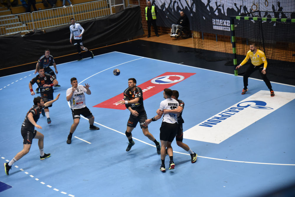Iako su u prvim minutama prvog poluvremena gosti pokušavali iznenaditi Gromove, vrlo brzo to sve prerasta kao igra na jedan gol te RK Nexe iz minutu u minutu povećava gol razliku te na kraju rezultat iznosi 35:25 (17:16).