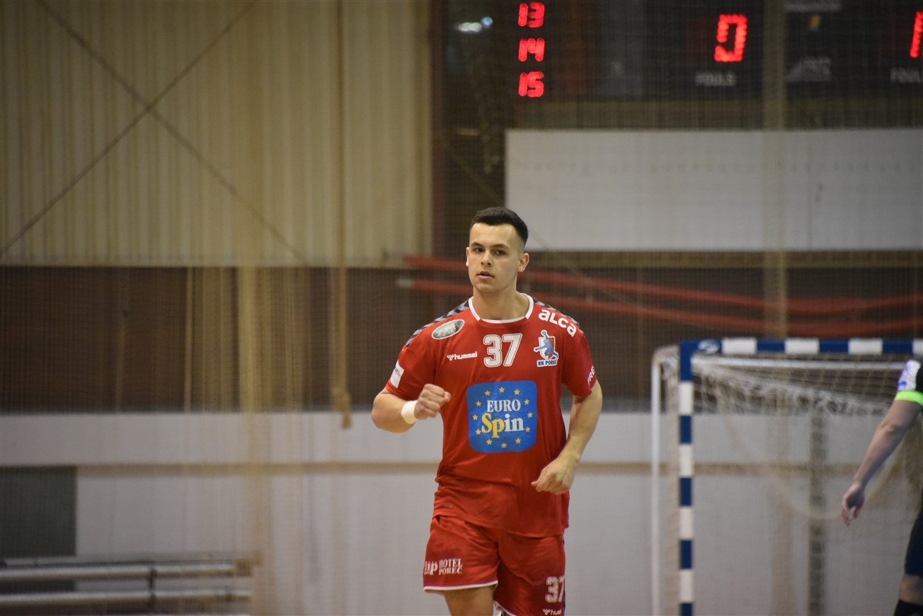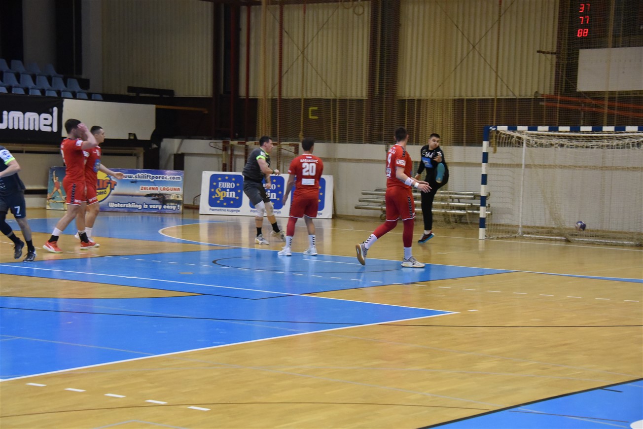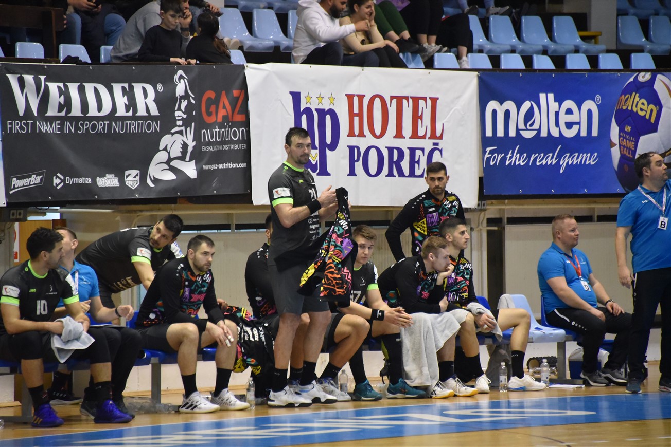 Nakon sjajne pobjede u prvoj utakmici osmine finala EHF Europske lige, Gromovi su iz Njemačke odmah krenuli put Poreča, gdje su proveli vrijeme do večerašnje utakmice. Iznimno motivirana domaća ekipa prilično je dobro parirala Gromovima u prvom poluvremenu, koji su osim početnih 1:1, svo preostalo vrijeme prvog dijela bili u prednosti. Čvrsta i super pokretljiva igra u obrani i vrlo raspoloženi vratar Mihailo Radovanović ostavili su domaće rukometaše punih 10 minuta bez pogotka. Gromovi su naime u 12. minuti imali ugodnih 5:1, a Porečane je "na životu" držao također večeras dobro raspoloženi vratar Ćopić, koji je poskidao nekoliko čistih udaraca i omogućio svojoj ekipi da u 16. minuti ulovi priključak (4:5). Do kraja prvog dijela naša momčad ponovno pojačava ritam i ponovno se odvajamo na +4, a na odmor se odlazi s dva pogotka viška.