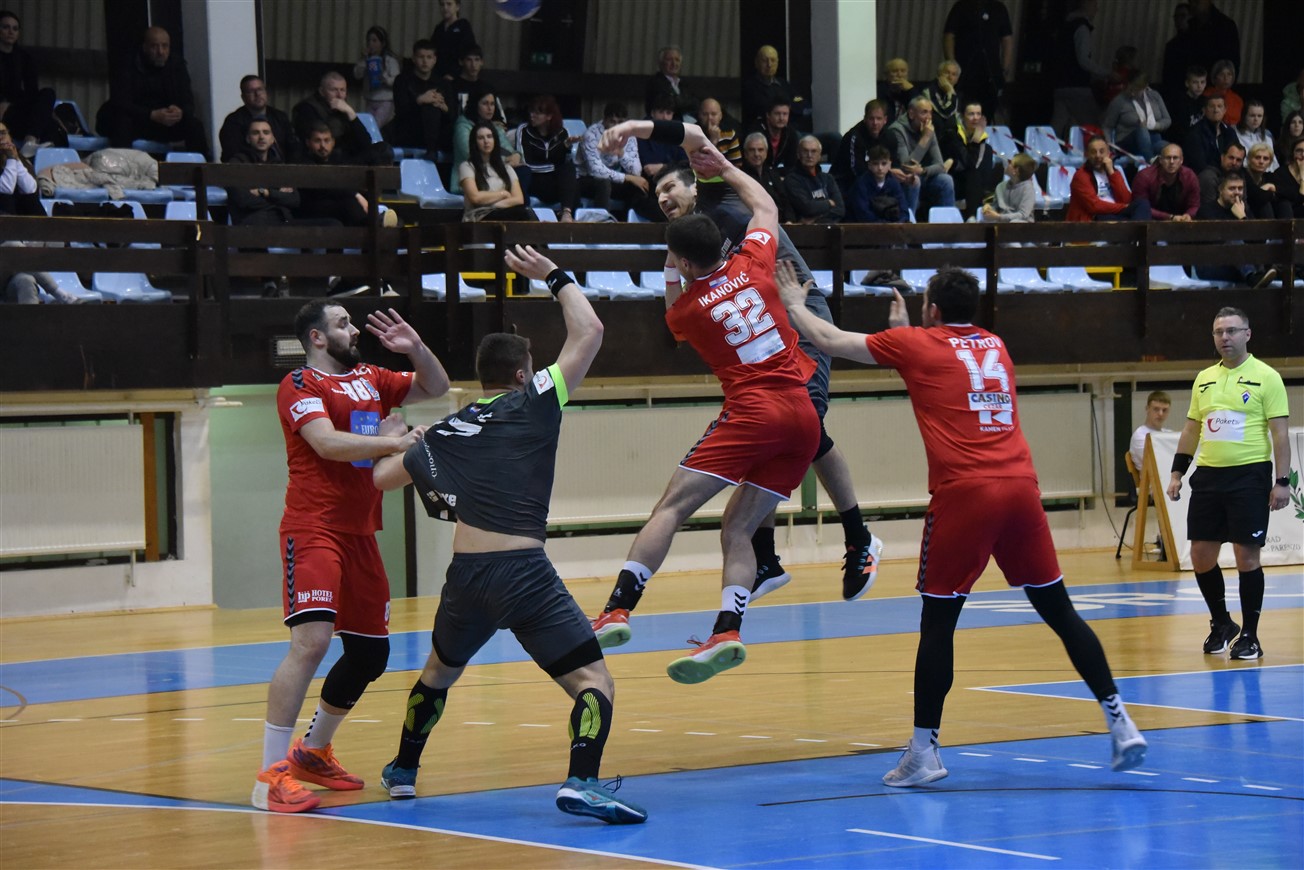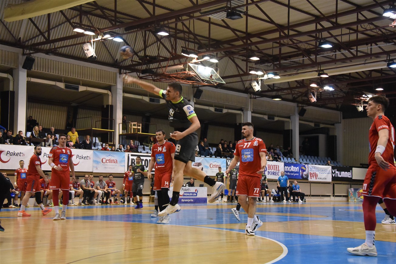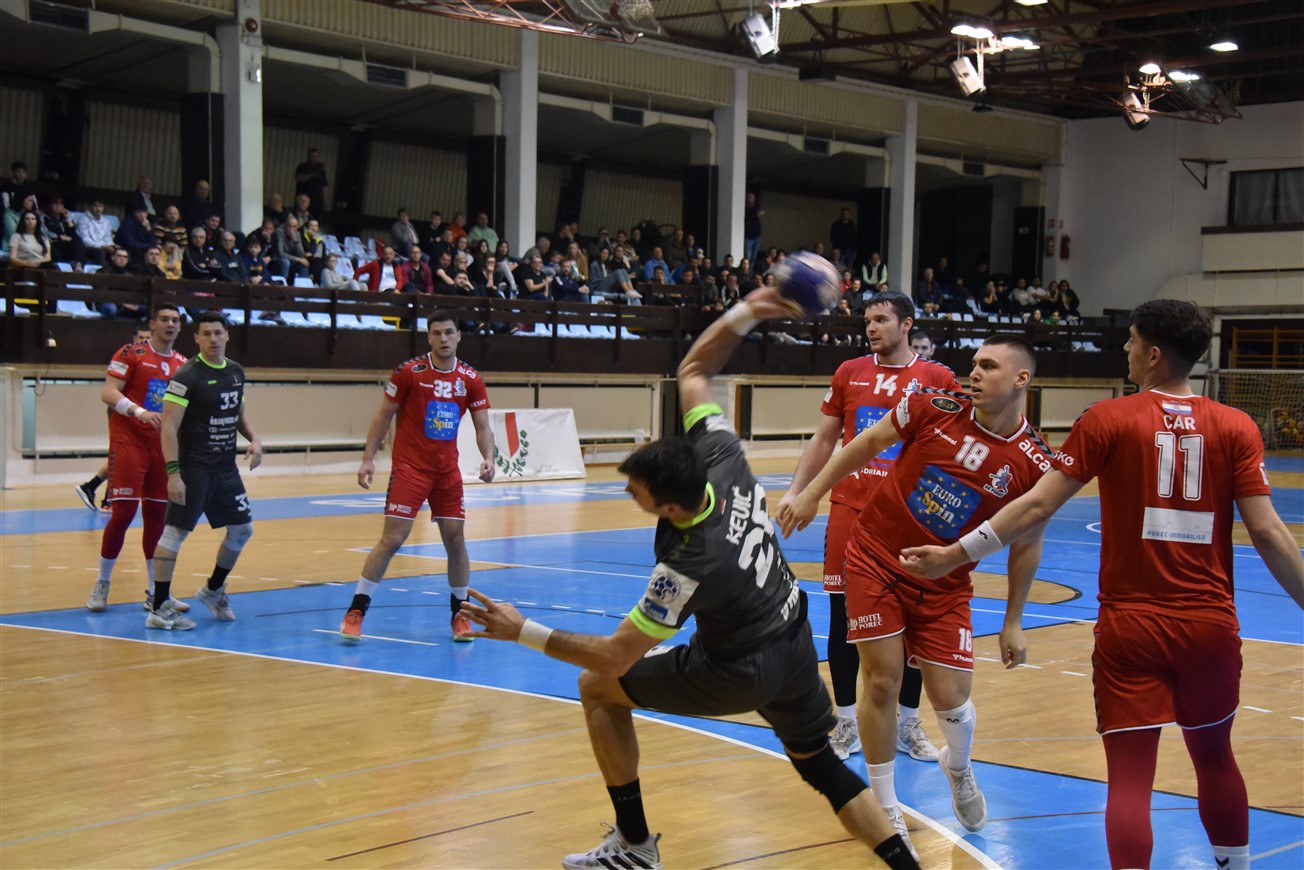 Nakon sjajne pobjede u prvoj utakmici osmine finala EHF Europske lige, Gromovi su iz Njemačke odmah krenuli put Poreča, gdje su proveli vrijeme do večerašnje utakmice. Iznimno motivirana domaća ekipa prilično je dobro parirala Gromovima u prvom poluvremenu, koji su osim početnih 1:1, svo preostalo vrijeme prvog dijela bili u prednosti. Čvrsta i super pokretljiva igra u obrani i vrlo raspoloženi vratar Mihailo Radovanović ostavili su domaće rukometaše punih 10 minuta bez pogotka. Gromovi su naime u 12. minuti imali ugodnih 5:1, a Porečane je "na životu" držao također večeras dobro raspoloženi vratar Ćopić, koji je poskidao nekoliko čistih udaraca i omogućio svojoj ekipi da u 16. minuti ulovi priključak (4:5). Do kraja prvog dijela naša momčad ponovno pojačava ritam i ponovno se odvajamo na +4, a na odmor se odlazi s dva pogotka viška.